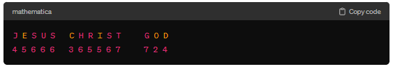 In this transformation, each letter of "JESUS CHRIST" and "GOD" is assigned a numerical value based on its position in the alphabet: