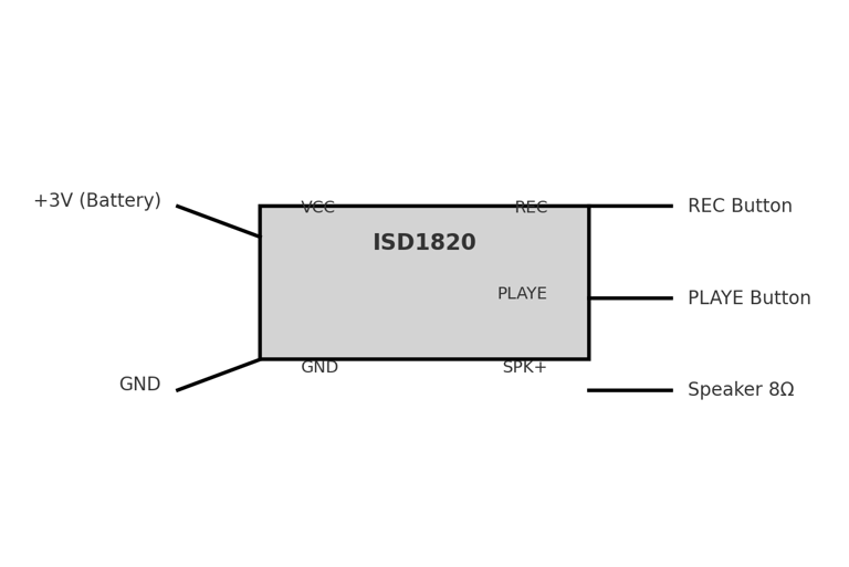 🧩 Basic Schematic (ISD1820 Standalone Version)