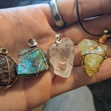 What I make is minimal: copper, silver, or brass wire. No settings, no bezels. Just a loop, a twist, a dab of solder â enough to qualify. The designs are stripped down to the legal minimum, but the meaning? Thatâs layered.
