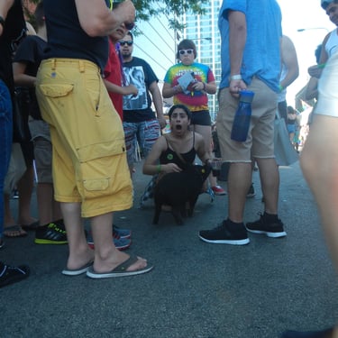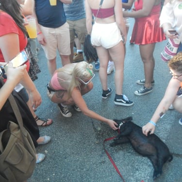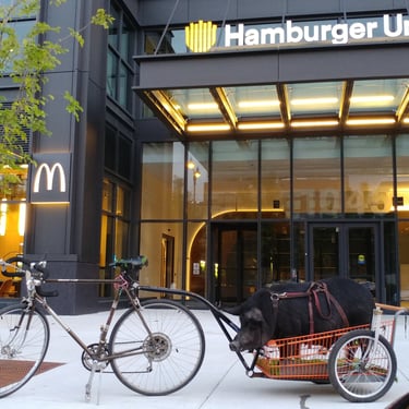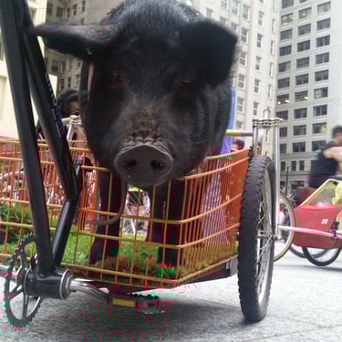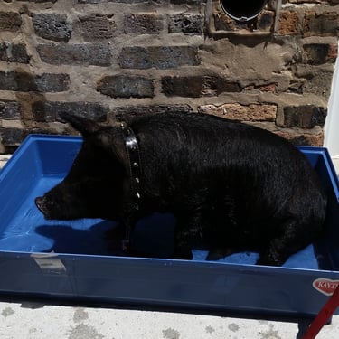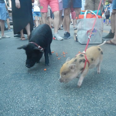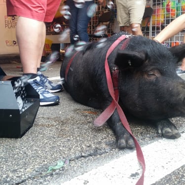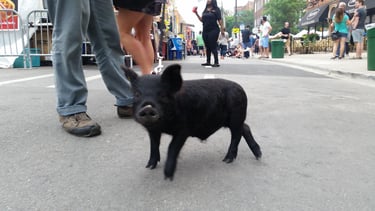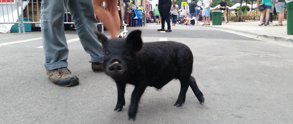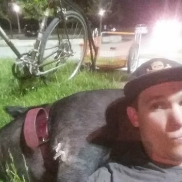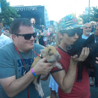 This was a really fun year or so taking Wiggum out and about in Chicago while he could still be carried. There were street fairs all the time; Wiggum invaded a petting zoo and was a favorite of the Chicago Police. World Naked Bike rides. Multiple Riot Fests. And, of course, all the places we got kicked out of. We were kicked out of the Exit after being invited to come because Wiggum peed and pooped near the front door like three times (who hasn't there). We got kicked out of the Eazy Inn for him again being asked to come and pee on the floor. We also got kicked out of Phylis's music bar, and the one that really got me ticked off was Parson's Chicken and Fish in Logan Square. We were kicked out because it worked up the dogs. Chicago has a patio license allowing dogs on the premises. Instead of simply kicking out poorly behaved dogs, it was Wiggum who got the boot. Further, Wiggum is a legal emotional support animal, and the paperwork was from my medical professional whom I had seen for years; no online loophole, and the law gives establishments elective rights to discriminate or not, and Parsons Chicken and Fish maintained a well-behaved emotional support pig ruined the poorly behaved dog culture experience he caused, and Wiggum wasn't allowed in. That's when I started noting on all of Wiggum's Instagram posts "boycott Parsons Chicken and Fish". I took a lot of heat for that but would do the same thing over again, and to this day, never went back and never will. I encourage you to not go there as well. I originally thought about suing the city of Chicago as if you look into Cook County health code if I recall it explicitly said something adverse to the whole dog patio license would violate something, but I need to recall and look up what that exactly was. Seriously, fuck dog culture. Not dogs, but the culture. Except small yappy dogs. They are just as bad as cats. I'm slightly allergic to both cats and dogs, and why would I get an emotional support dog or service animal if I'm slightly allergic to them? Wiggum, I have no apparent allergy problems with.