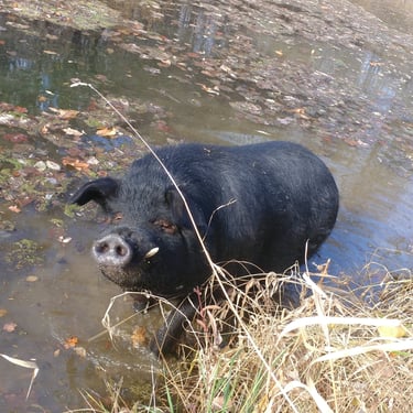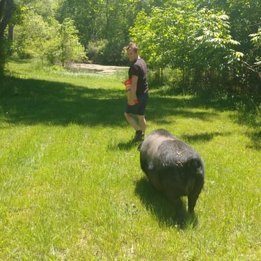 Sometime in March 2016, a special piglet was born at Old Crowe Farm in Red Oak, Virginia. They named him "Old Boy". In my extensive research on pig breeds, I discovered American Guinea Hogs. These hogs, known as a heritage breed, are lard hogs (as opposed to meat) and are generally not bred much anymore. Though there was no guarantee of his final size, Old Crowe mentioned that he appeared a bit of a runt at birth. My findings indicated that a male American Guinea Hog typically stays under 200 pounds, which seemed manageable. Despite this uncertainty, I decided to adopt one. After several conversations, I found Old Crowe Farm and made the decision to adopt one. Thus, "Old Boy" struck the pig lottery of life.