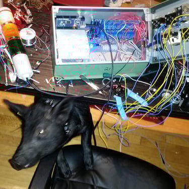 the city started cracking down on my case, hitting me with all sorts of pre-existing code violations, even though I had active permits and was making significant progress. I was handling all the work myself while juggling my day job as an electrical engineer. It was exhausting. While I accomplished a lot, I realized I had done things in the wrong order. I should have completely gutted the house, rebuilt the roof and framing first, but I mistakenly believed I could shore up sagging areas. Unfortunately, I was unable to do so, which meant I would have to start over, ripping out all the water and electrical systems, leaving it as little more than a brick shell for a while, especially with winter approaching. Before winter set in, a contractor swindled me by botching the basement pouring, leaving me in dire straits. With a few break-ins occurring, including one while Wiggum and I were in the house, things were spiraling out of control. I experienced a mental breakdown and a suicide attempt. At that juncture, I realized that given the housing situation's volatility, I needed to find a long-term solution for Wiggum. He weighed in at about 235 pounds, and he was strong enough that restraining him during walks or street fairs posed a risk. If he trampled or bit someone, it could have dire consequences. Pigs lack approved rabies vaccinations; Wiggum's vet administered Imrab 3, and I believe we obtained a titer test confirming its effectiveness. However, if someone claimed Wiggum had bitten their child or broken their skin by stepping on their toe and reported it to animal control, they would likely euthanize him. They would chop off his head.