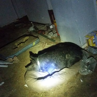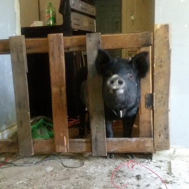 Before the shit hit the fan I bought a condemned house in West Humboldt Park as is, cash so I'd have somewhere for my boy to live, and was done with landlords having issues at now three in a row. It was rough at first as there were no water pipes/hot water, electrical, furnace, large holes in the brickwork one could climb through, and pretty sure a former crackhouse/crack selling going on in the backyard when I moved in. Wiggum had the whole basement to himself. Yes, I lived in a condemned building with a pig for quite some time while I made a respectable try to rehab the place. It was overall a mess in the end.
