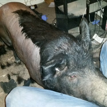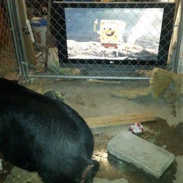 Often when a pig gets "too big" it gets ditched on a scanturary or worse and never sees its human again. I'm sure Chubby Goat Acres staff would agree this has not happened. Sometimes I may miss a month but he's not forgotten. He's just got a different farm life than he grew up to. He probably enjoys the mud and pen he's got more than sitting for hours in the basement while I'm off at work. He's loved. He's everything to me. You might think I just dumped Wiggum and made it their problem but I assure you he's a very financially sponsored resident. Although CGA is a rescue I somewhat jokingly say, "Some people have horses, I have a pig-son". I max out my employer's 501c3 gift match in most recent years. It would be nice if readers of this would decide to donate as well. There are a lot of amazing souls on their sanctuary who could use a sponsor and a visitor on occasion.