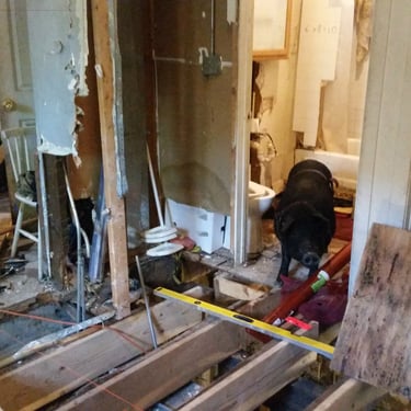 The landlord, upon my move-in, mentioned she had encountered issues with a previous tenant who owned a dog. The tenant claimed the dog's urination was causing leakage into the unit below. Later on, we discovered the absurdity of this claim, which resulted in numerous problems stemming from a logical toilet flange leak. Kevin Porter (known for BMX), pointed out that the issue occurred when the toilet flushed, causing drainage down the wall.