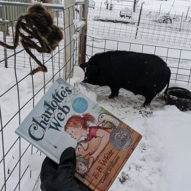 Wiggum is a permanent resident at Chubby Goat Acres and I see him about once a month give or take. He enjoys swimming in the pond and getting read to. I'm currently making a video series where every time I visit he gets read one chapter of Charlotte Web (Youtube Link). It doesn't matter what season it is, how cold and harsh it may be, he gets read to. Although it's great to see Wiggum as much as possible I needed to find some other thing to do than give him treats. He's getting older, about 8 years old as of writing this article on 2/28/2024.